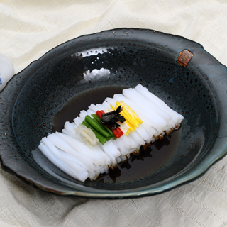 - 1. 청포묵을 약 6~7m 길이로 썰어 맛소금과 참기름에 살짝 버무려 놓는다.