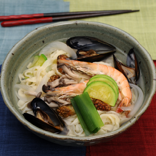 - 밀가루(180g), 소금(0.3g), 녹말가루(20g), 덧밀가루(50g) 애호박(20g), 느타리버섯(20g), 양파(20g), 대파(20g) 홍합(20g), 새우(20g), 미더덕(10g), 저염간장(10g)