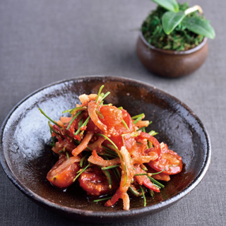 - 방울토마토 200g, 영양부추 20g, 양파 40g, 청고추 15g, 홍고추 15g