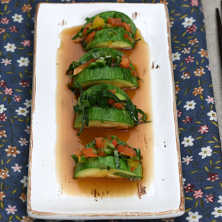 - 애호박(1개), 깻잎(3장), 양파(30g), 피망(30g), 파프리카(50g), 저염간장(50g), 매실액(20g)