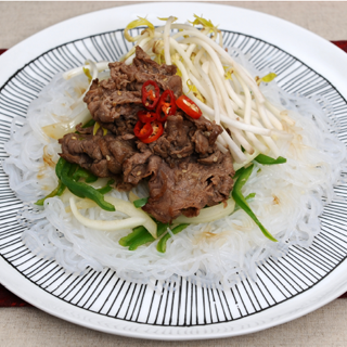 - 실곤약(120g), 소고기(50g), 숙주(50g) 양파(20g), 청피망(10g), 홍고추(10g)