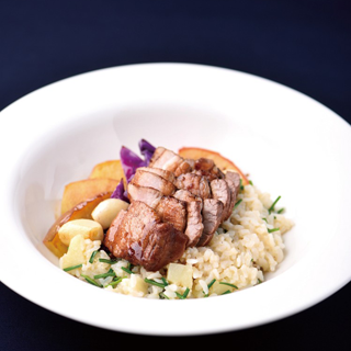 - 6. 접시에 곁들이 채소와 청국장 리조또를 함께 올려 셋팅한다.